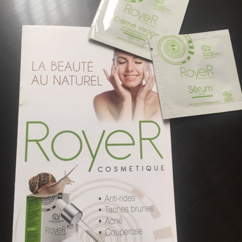 Bonjour, j'ai reçu aujourd'hui deux petits échantillons Royer en demande spontanée. Il y a un sérum et une crème pour le visage à base de bave d'escargot.