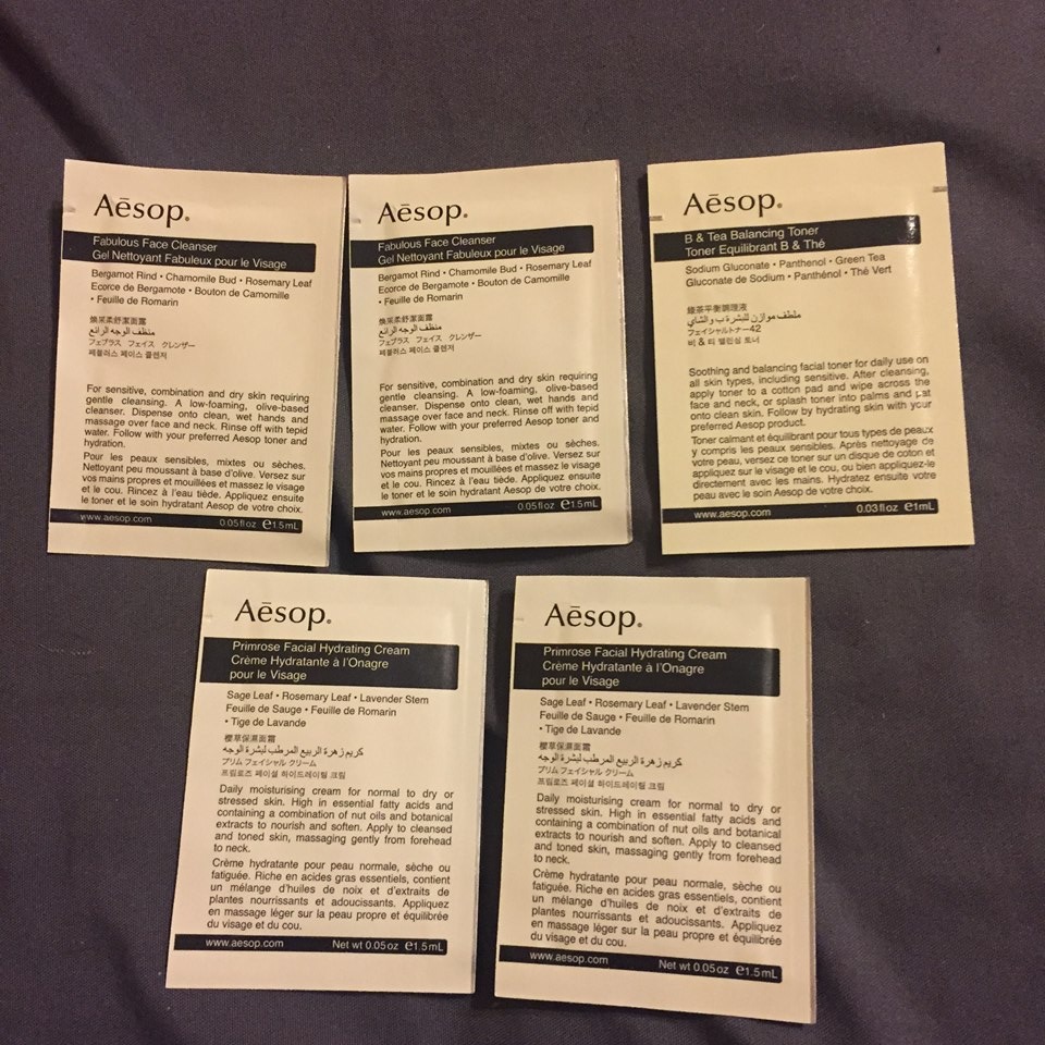 J'ai été gâtée encore une fois, j'ai reçu des échantillons Aésop en demande spontanée, le catalogue Famille Mary accompagné d'un échantillon Abellie, ainsi que deux parfums Goutal au design magnifique, et enfin une dose de désodorisant/assouplissant pour vêtements de sport gagné sur le site Nikwax.